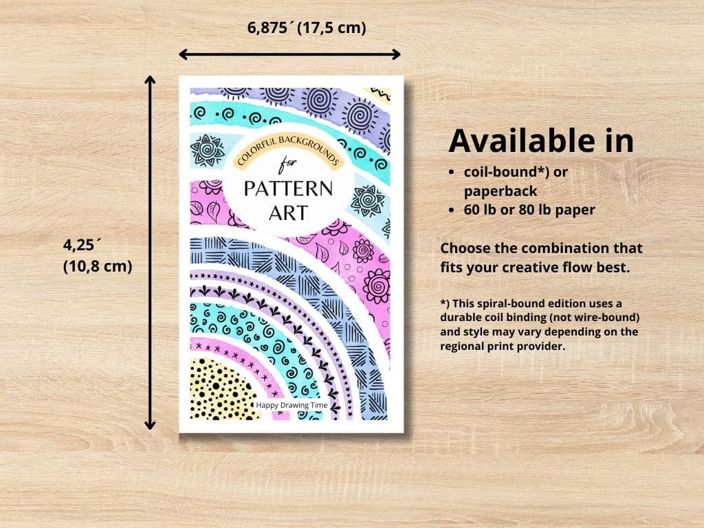 Take your creativity anywhere with this joyful little book. Filled with vibrant, ready-to-use backgrounds, it’s the perfect companion for your Pattern Art, Zentangle®, Line Art, Mandalas, or just doodling freely. Whether you’re commuting, waiting in line, or pausing for a moment of mindfulness, this book invites you to dive into your art. The colorful pages not only add depth and contrast to your drawings—they also spark joy and inspiration wherever you are.
